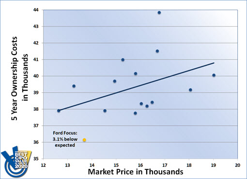 The Ford Focus won the 2020 Vincentric Best CPO Value in America™ award in the Compact segment. Having the lowest maintenance and total cost of ownership in its class helped the Focus enter the winner's circle.