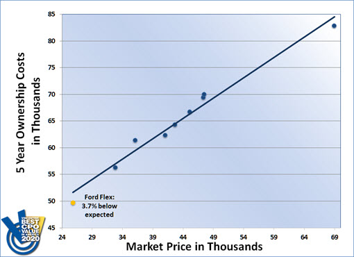 The Ford Flex won the 2020 Vincentric Best CPO Value in America™ in the Large SUV/Crossover segment. This is the fourth consecutive time the Flex has been in the winner’s circle, helped by having the lowest cost of ownership in its class.