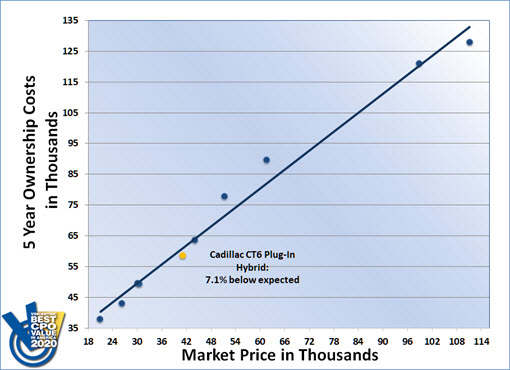 The Cadillac CT6 Plug-In Hybrid took home its first win in the Luxury Electric/Plug-In Hybrid segment of the Vincentric Best CPO Value in America™ awards. The CT6 Plug-In Hybrid had the lowest insurance costs in its class, which helped it earn the top spot in 2020.