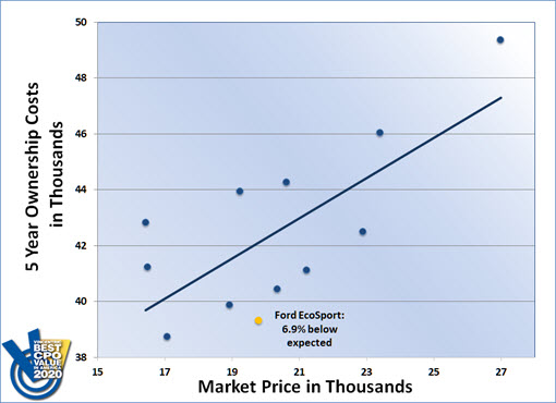 The Ford EcoSport took home the 2020 Vincentric Best CPO Value in America™ award in the Subcompact SUV/Crossover segment. The EcoSport had the lowest maintenance cost in its class, helping it earn this first-time win.