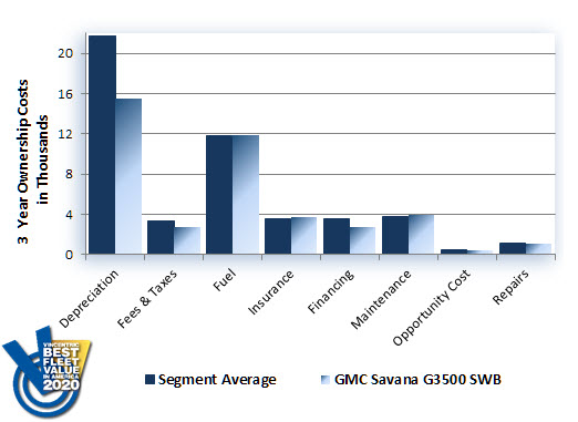 The GMC Savana G3500 won the Vincentric Best Fleet Value in America™ award for the third time in the Full-Size 1-Ton Passenger Van segment, due in no small part to its lowest maintenance costs in its class.