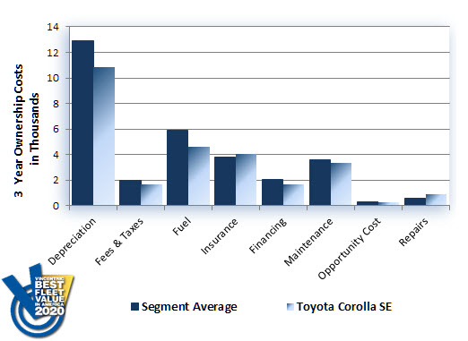 The Toyota Corolla SE won the 2020 Vincentric Best Fleet Value in America™ award for the Compact Hatchback segment, due in no small part to having the best fuel economy in its class.