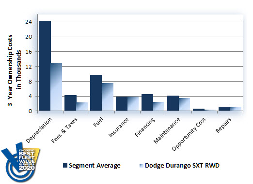 The Dodge Durango SXT RWD won the 2020 Vincentric Best Fleet Value in America™ award in the Large SUV/Crossover segment, making this the fourth consecutive time the SXT has been in the fleet winner's circle. Having the lowest maintenance, depreciation, and operating costs in its class gave the Durango SXT RWD an award-winning performance for 2020.