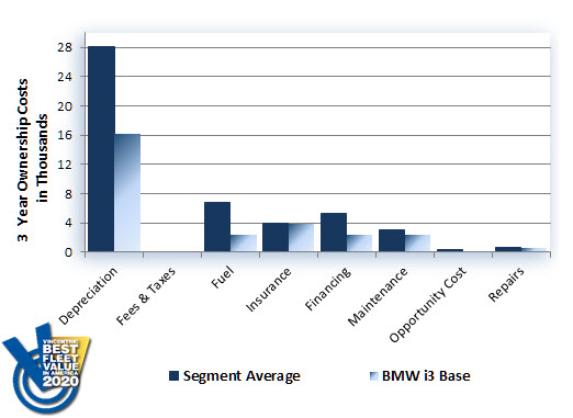 For the third consecutive year, the BMW i3 Base earned the Vincentric Best Fleet Value in America™ award in the Luxury Electric/Plug-In Hybrid segment. Having the lowest depreciation and fixed costs in its class contributed to the 2020 win. The BMW i3 has won the Luxury Electric/Plug-In Hybrid segment each year that it has been awarded, making it undefeated in its category.