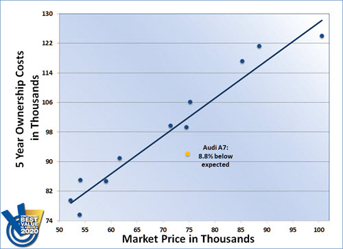 The Vincentric Best Value in America awards are based on the model level average of all trim levels within the model. Ownership costs for each trim level are measured at annual mileages of 10,000, 15,000, and 20,000. To learn more about this graph and how Vincentric measures value, click here.