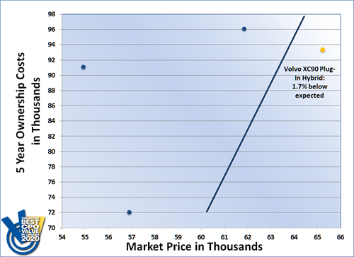 The Volvo XC90 Plug-In Hybrid earned the win in the Luxury Electric/Plug-In Hybrid SUV/Crossover segment of the 2020 Vincentric Best CPO Value in Canada™ awards. The XC90 Plug-In Hybrid outperformed its competitors by having the lowest ownership costs in its class.