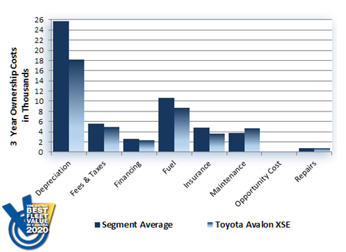 The Toyota Avalon XSE earned the award in the Large Sedan segment of the 2020 Vincentric Best Fleet Value in Canada™ awards. The Avalon XSE had an impressive performance with the lowest depreciation, insurance, and repair costs in its class. Even better, it also had the best fuel economy in its class!