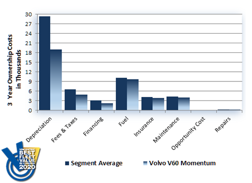 The Volvo V60 Momentum FWD T5 earned the top spot in the Luxury Wagon segment of the 2020 Vincentric Best Fleet Value in Canada™ awards, making this the second year in a row for the V60 Momentum and the third time overall for the Volvo V60. Having the lowest depreciation, insurance, fixed, and operating costs propelled the V60 Momentum to victory.