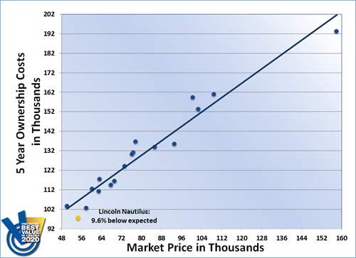 For the second year in a row, the Lincoln Nautilus earned the win in the Luxury Mid-Size SUV/Crossover segment of the Vincentric Best Value in Canada™ awards. The Nautilus' 2020 victory was aided by having the lowest total cost of ownership and best fuel economy in its class.