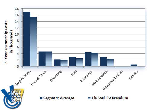 The Kia Soul EV Premium claimed the 2021 Vincentric Best Fleet Value in Canada™ award in the Electric/Plug-In Hybrid segment. The Soul EV Premium outperformed its competitors for the second time in this segment, helped by having the lowest operating costs in its class.