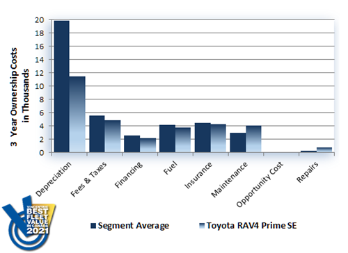 The Toyota RAV4 Prime SE AWD earned the 2021 Vincentric Best Fleet Value in Canada™ award in the Electric/Plug-In Hybrid SUV/Crossover segment. In an impressive performance, the RAV4 Prime SE AWD outperformed 23 competitor trims to claim its spot atop the podium.