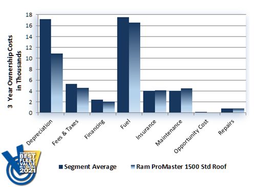 The Ram ProMaster 1500 Std Roof 118 WB won the 2021 Vincentric Best Fleet Value in Canada™ award in the Full-Size 1/2-Ton Cargo Van segment, making this the fourth time overall and the third consecutive year that the ProMaster 1500 has been in the winner's circle. This year's victory was aided by this ProMaster having the best fuel economy in its class.