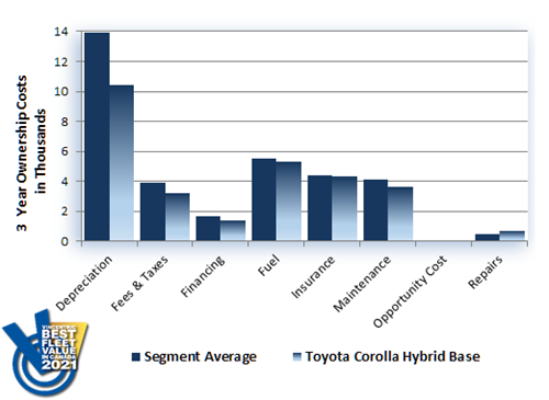 For the second consecutive year, the Toyota Corolla Hybrid Base won the Vincentric Best Fleet Value in Canada™ award in the Hybrid segment. The Corolla Hybrid Base had the lowest maintenance cost in its class, which helped it bring home the 2021 award.