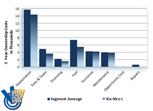 2021 marks the fifth consecutive year that the Kia Niro L has triumphed in the Hybrid SUV/Crossover segment of the Vincentric Best Fleet Value in Canada™ awards. Having the best fuel economy and the lowest operating costs in its class helped lead the Niro L to this impressive repeat victory.