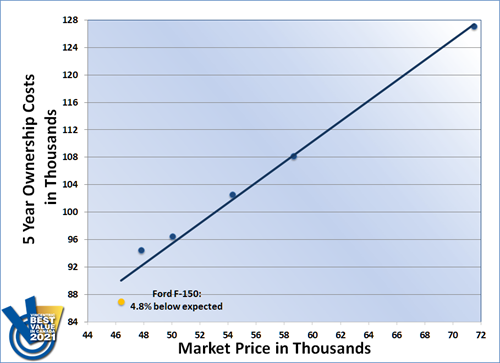 Returning for an impressive seventh consecutive year and ninth time overall, the Ford F-150 won the Full-Size 1/2-Ton Pickup segment of the 2021 Vincentric Best Value in Canada™ awards. The F-150 outperformed its competitors by having the lowest fuel, insurance, and operating costs in its class. It also had the lowest total cost of ownership of any Full-Size 1/2-Ton Pickup!