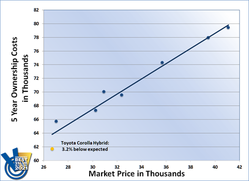 The Toyota Corolla Hybrid won the Vincentric Best Value in Canada™ award for the second consecutive time in the Hybrid segment, with its 2021 victory helped by having the lowest maintenance costs and lowest total cost of ownership in its class.