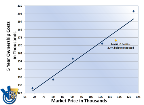 The Lexus LS Series claimed the 2021 Vincentric Best Value in Canada™ award in the Luxury Large Sedan segment. The LS Series outperformed 5 competitor models to take home the victory.