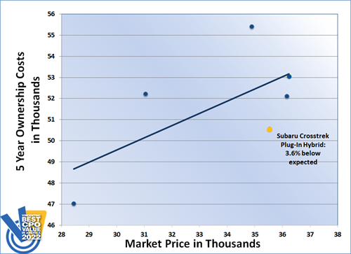 The Subaru Crosstrek Plug-In Hybrid won the 2022 Vincentric Best CPO Value in America™ award in the EV/PHEV SUV segment. The Crosstrek Plug-In Hybrid had a best-in-class performance that helped it outperform five competitor models.