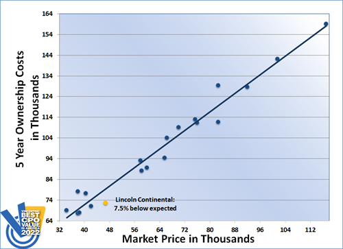 The 2022 Vincentric Best CPO Value in America Awards are based on the average of all trim levels for each model from the 2017-2021 model years. Costs are based on 5 years of ownership with annual mileage of 15,000. Graph shown is a visual representation of the actual results, but may not reflect the exact calculations. To learn more about this graph and how Vincentric measures value, click here.