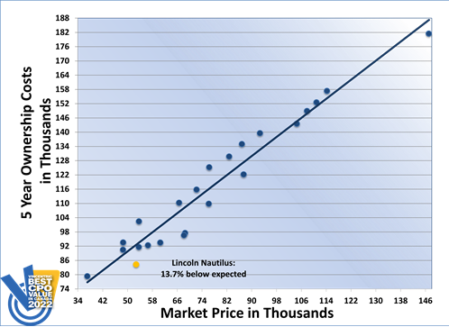 The Lincoln Nautilus delivered best-in-class results to claim the 2022 Vincentric Best CPO Value in Canada™ award in the Luxury Mid-Size SUV segment and outperform 20 competitor models.