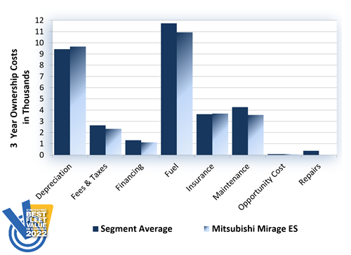 The Mitsubishi Mirage ES won the 2022 Vincentric Best Fleet Value in Canada™ award in the Subcompact segment. The Mirage outperformed nine competitor trims to claim its spot at the top of the podium.