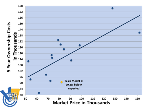 The Tesla Model Y won the 2022 Vincentric Best Value in Canada™ award in the Luxury EV/PHEV SUV segment, aided by having the best fuel economy, lowest maintenance cost, and lowest operating costs in its class.