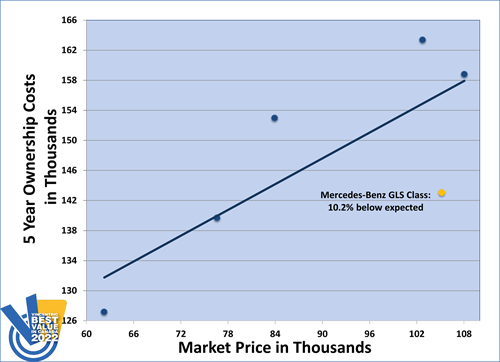 Returning for the fourth time, the Mercedes-Benz GLS Class was honoured with the Vincentric Best Value in Canada™ award in the Luxury Large SUV segment. Having the lowest depreciation cost in its class led the GLS Class to the top of the 2022 podium.
