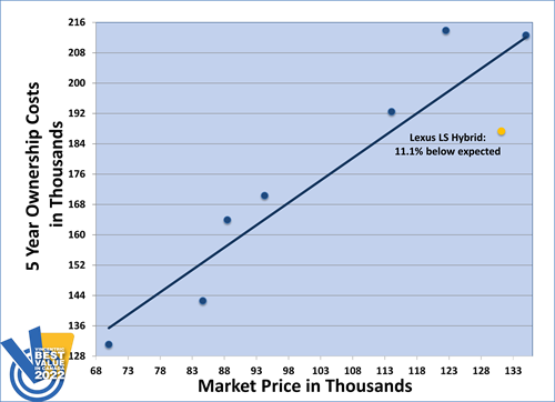 The Lexus LS Hybrid came out on top of the Luxury Large Sedan segment of the 2022 Vincentric Best Value in Canada™ awards. The LS Hybrid had an impressive performance that allowed it to outperform six competitor models.