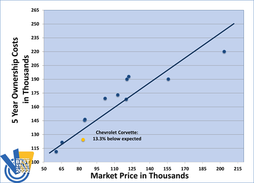 For the third time, the Chevrolet Corvette received the Vincentric Best Value in Canada™ award in the Luxury Sports Car segment. This 2022 victory was aided by the Corvette having the lowest depreciation, insurance, and maintenance costs of any Luxury Sports Car.