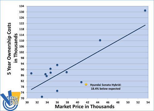 The Hyundai Sonata Hybrid came out on top of the Mid-Size segment of the 2022 Vincentric Best Value in Canada™ awards. The Sonata Hybrid had an impressive performance for this year, outperforming 11 competitor models to take home the award.