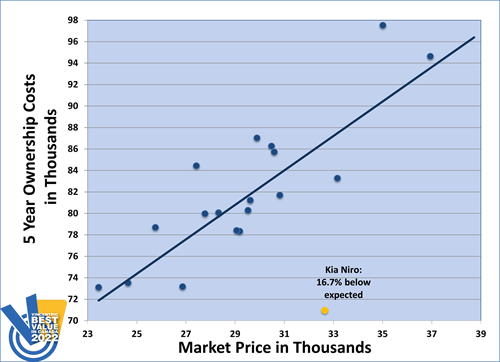 The Kia Niro received the 2022 Vincentric Best Value in Canada™ award in the Subcompact SUV segment. The Niro had the lowest fuel, operating, and total ownership costs in its class, which helped lead it to victory.