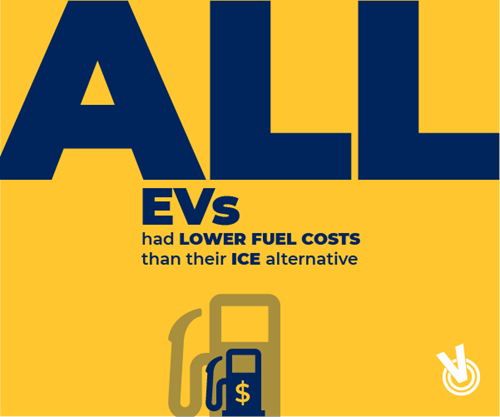 The analysis investigated eight different ownership costs: depreciation, fees & taxes, financing, fuel, insurance, maintenance, opportunity cost, and repairs. The study also analyzed the Environmental Cost of Ownership to compare the greenhouse gases created by driving an ICE vehicle with the greenhouse gases created when producing the electricity needed to power an EV.