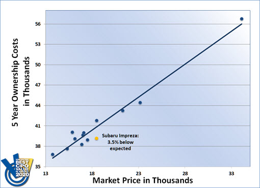 The Subaru Impreza won the 2020 Vincentric Best CPO Value in America™ award in the Compact Hatchback segment. The Impreza outperformed twelve competitor models to take home this win.