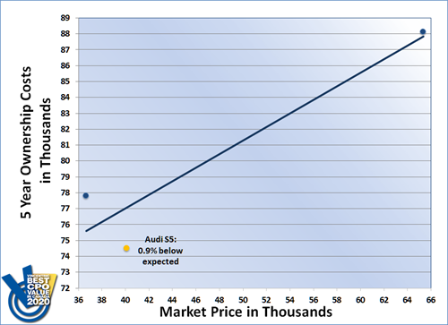The Audi S5 was honoured with the 2020 Vincentric Best CPO Value in Canada™ award in the Luxury Mid-Size Coupe segment. Having the lowest total cost of ownership and the lowest insurance cost in its class helped the S5 claim victory.