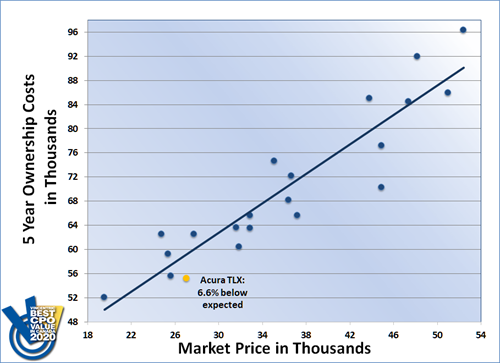 The Acura TLX earned the 2020 Vincentric Best CPO Value in Canada™ award in the Luxury Mid-Size Sedan segment. The TLX outperformed 21 competitor models to take home this second-time win.