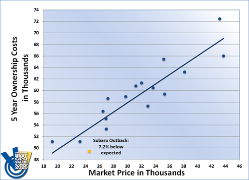For the second consecutive year, the Subaru Outback won the Mid-Size SUV/Crossover segment of the Vincentric Best CPO Value in Canada™ awards. The Outback's 2020 victory was aided by having the lowest insurance cost and best fuel economy in its class.