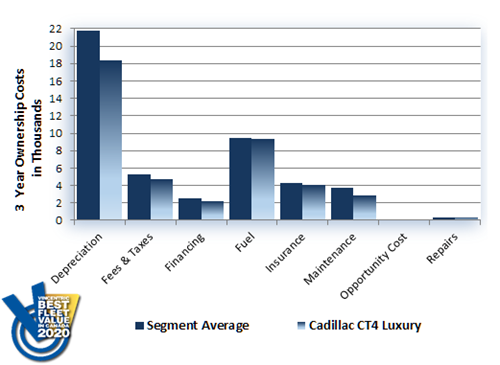 The Cadillac CT4 Luxury won the 2020 Vincentric Best Fleet Value in Canada™ award in the Luxury Compact segment. This segment was hotly contested, but the CT4 prevailed by showing low ownership costs in a wide variety of annual driving distances and ownership timeframes.