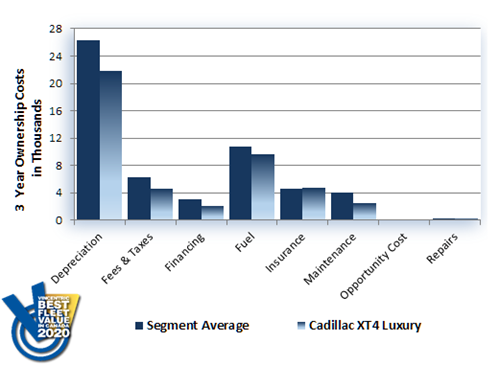 For the second year in a row, the Cadillac XT4 Luxury FWD won the Luxury Compact SUV/Crossover segment of the Vincentric Best Fleet Value in Canada™ awards. Having the lowest operating costs in its class was a key factor in securing the 2020 victory.