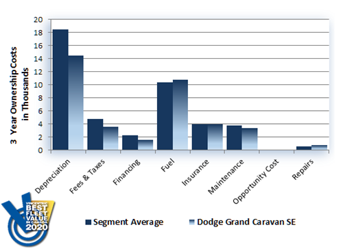 The Dodge Grand Caravan SE took home the 2020 Vincentric Best Fleet Value in Canada™ award in the Minivan segment, aided by having the lowest fixed costs in its class. The Grand Caravan is a familiar sight in the winner's circle with this year marking its seventh overall win in the Minivan segment.