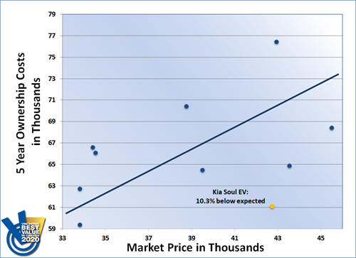 The Kia Soul EV triumphed in the Electric/Plug-In Hybrid segment of the Vincentric Best Value in Canada™ awards for the second consecutive year. This is also the fifth time overall the Soul EV has won the Electric/Plug-In Hybrid segment, with its 2020 victory helped by having the lowest repair cost in its class.
