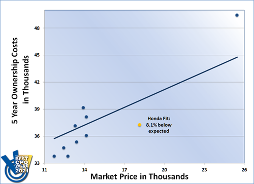 The Honda Fit earned the 2021 Vincentric Best CPO Value in America™ award in the Subcompact Hatchback segment. This is the second time the Fit has won this segment, with this year's victory aided by having the lowest insurance cost in its class.