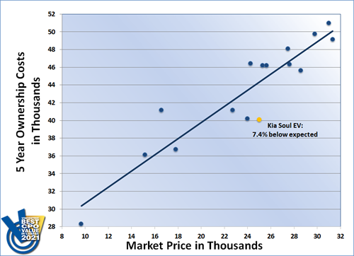 The Kia Soul EV returned as the winner of the Electric/Plug-In Hybrid segment of the 2021 Vincentric Best CPO Value in Canada™ awards, outperforming 14 competitor models to claim this second-time victory.