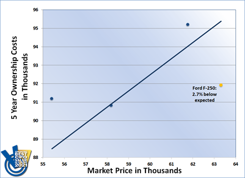 For the fourth year in a row, the Ford F-250 claimed the Vincentric Best CPO Value in Canada™ award in the Full-Size 3/4-Ton Pickup segment. Having the lowest repair, maintenance, and operating costs in its class paved the way to this repeat victory and helped the F-250 upkeep its undefeated streak.