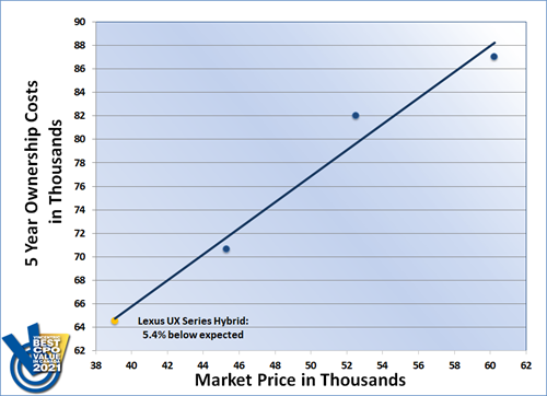 The Lexus UX Series Hybrid earned the 2021 Vincentric Best CPO Value in Canada™ award in the Luxury Hybrid SUV/Crossover segment. Having the lowest depreciation, operating, and fuel costs in its class contributed to the UX Series Hybrid's award-winning performance.