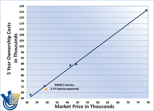 The 2021 Vincentric Best CPO Value in Canada awards are based on the average of all trim levels for each model from the 2016-2020 model years. Costs are based on 5 years of ownership with annual mileage of 20,000 kilometers. Graph shown is a visual representation of the actual results, but may not reflect the exact calculations. To learn more about this graph and how Vincentric measures value, click here.