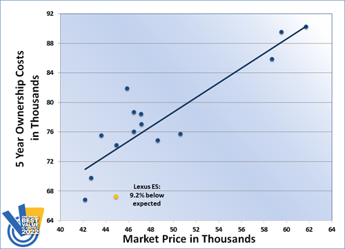 The Vincentric Best Value in America awards are based on the model level average of all trim levels within the model. Ownership costs for each trim level are measured at annual mileages of 10,000, 15,000, and 20,000. Graph shown is a visual representation of the actual results and may not reflect the exact calculations. To learn more about this graph and how Vincentric measures value, click here.