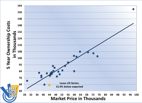 The Lexus UX Series won the 2022 Vincentric Best CPO Value in Canada™ award in the Luxury Compact SUV segment, outperforming an impressive 25 competitor models to take home the win.