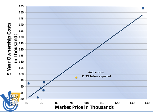 The Audi e-tron was honoured with the 2022 Vincentric Best CPO Value in Canada™ award in the Luxury EV/PHEV SUV segment. Having the best fuel economy and the lowest operating costs in its class helped the e-tron bring home the award.